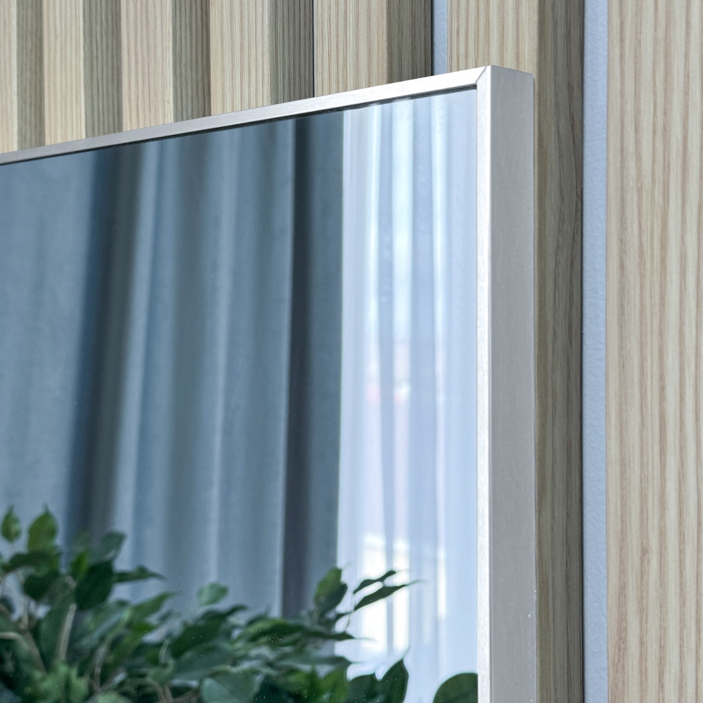 Настенное зеркало «PLAZA» – это идеальный выбор для вашего дома. Благодаря элегантной алюминиевой раме, изготовленной из высококачественного анодированного профиля, зеркало станет стильным  акцентом в вашем интерьере.